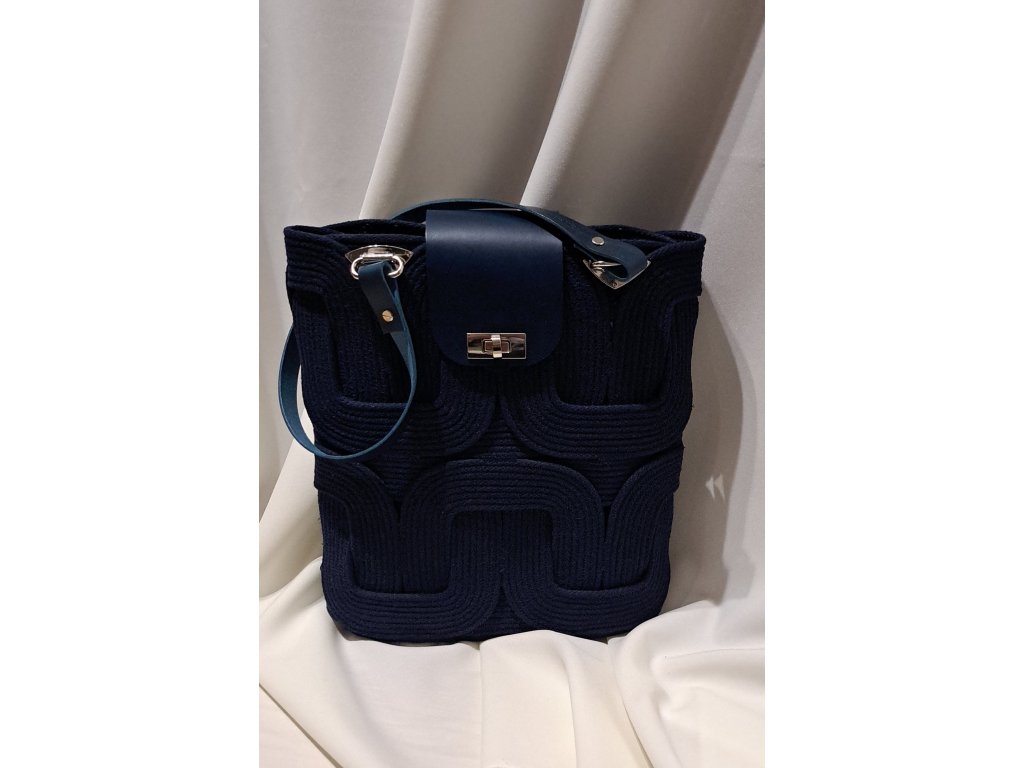 Ručně vyráběná čtvercová kabelka v tmavě modré barvě s koženou klopou a koženými popruhy. Elegantní a nadčasový doplněk, který se hodí pro každodenní nošení i slavnostnější příležitosti. Pevný tvar a kvalitní materiály zajišťují dlouhou životnost.