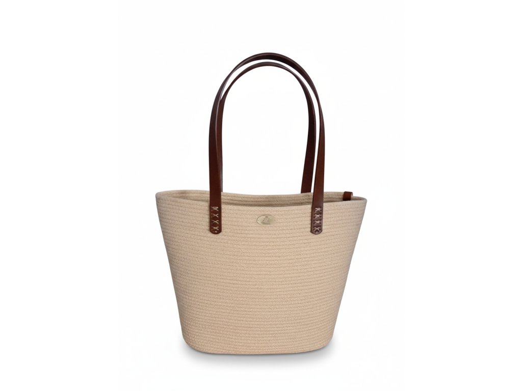 Elegantní krémová kabelka s pevnými koženými uchy. Nadčasový minimalistický design, který se hodí ke každodennímu nošení i k elegantním outfitům.