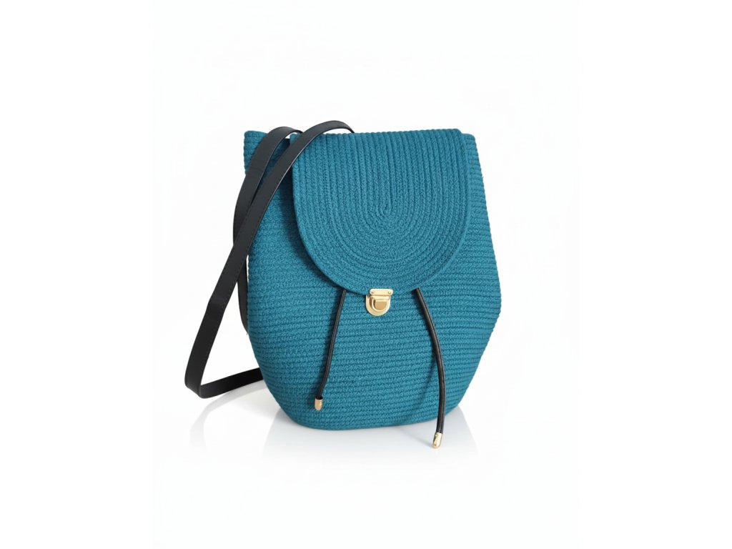 Stylový ručně šitý batoh v tyrkysové barvě s pevnou konstrukcí. Díky minimalistické klopě a kvalitním detailům je perfektní na celodenní používání.